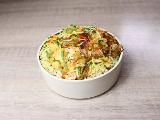 Vegetable biriyani,Raitha,Green Salad,Poppadam