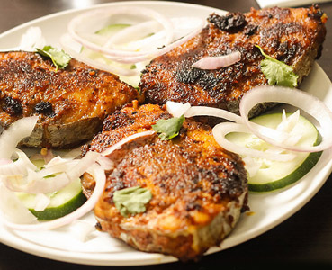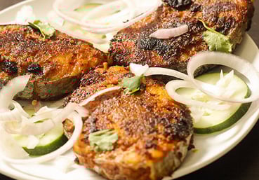 Fish masala Fry, Plain Rice, Dhal Makhni, Green Salad, Poppadom